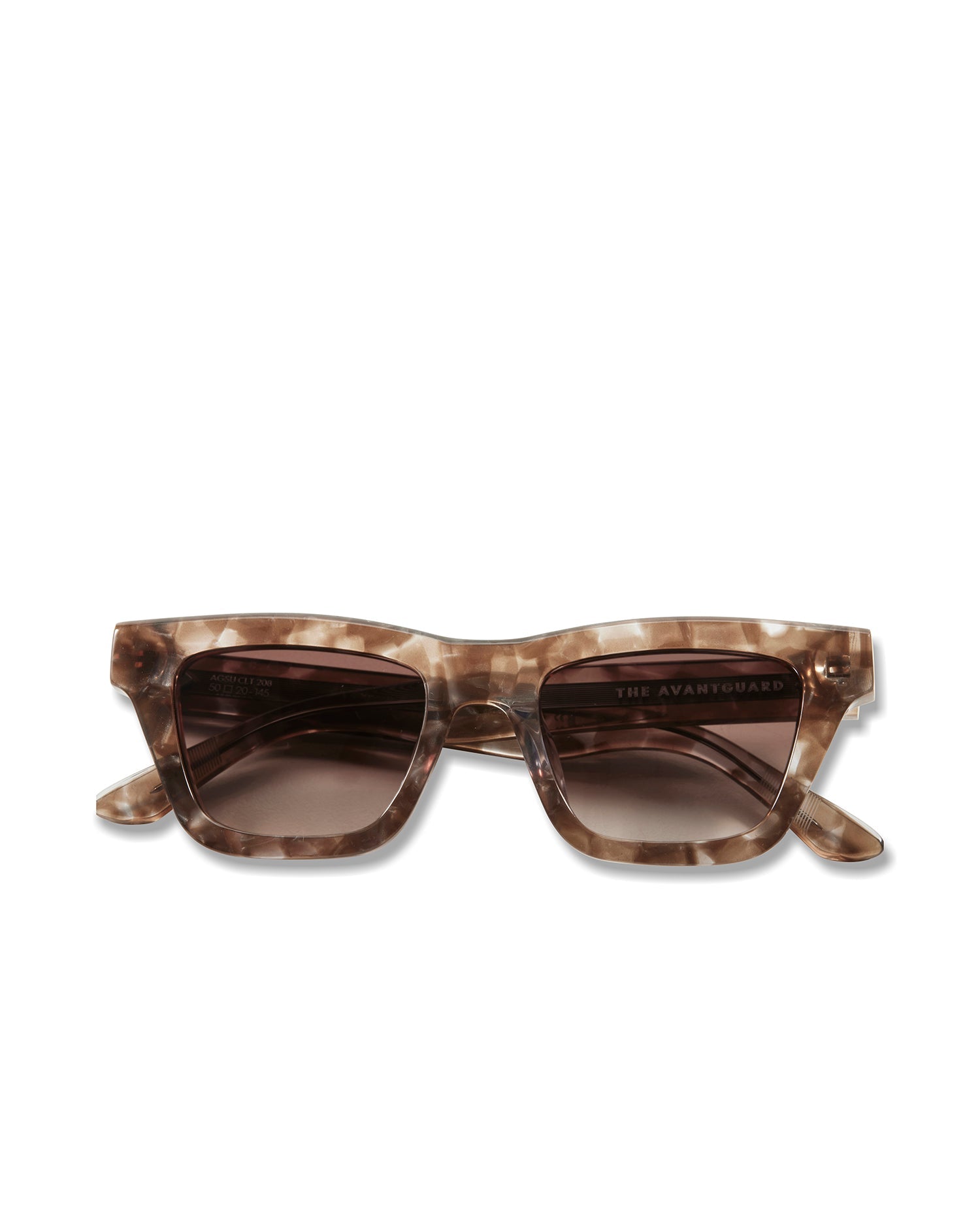 Pictured: Yarrow in Cloud Tort Plant-based acetate with Solid Brown Lens