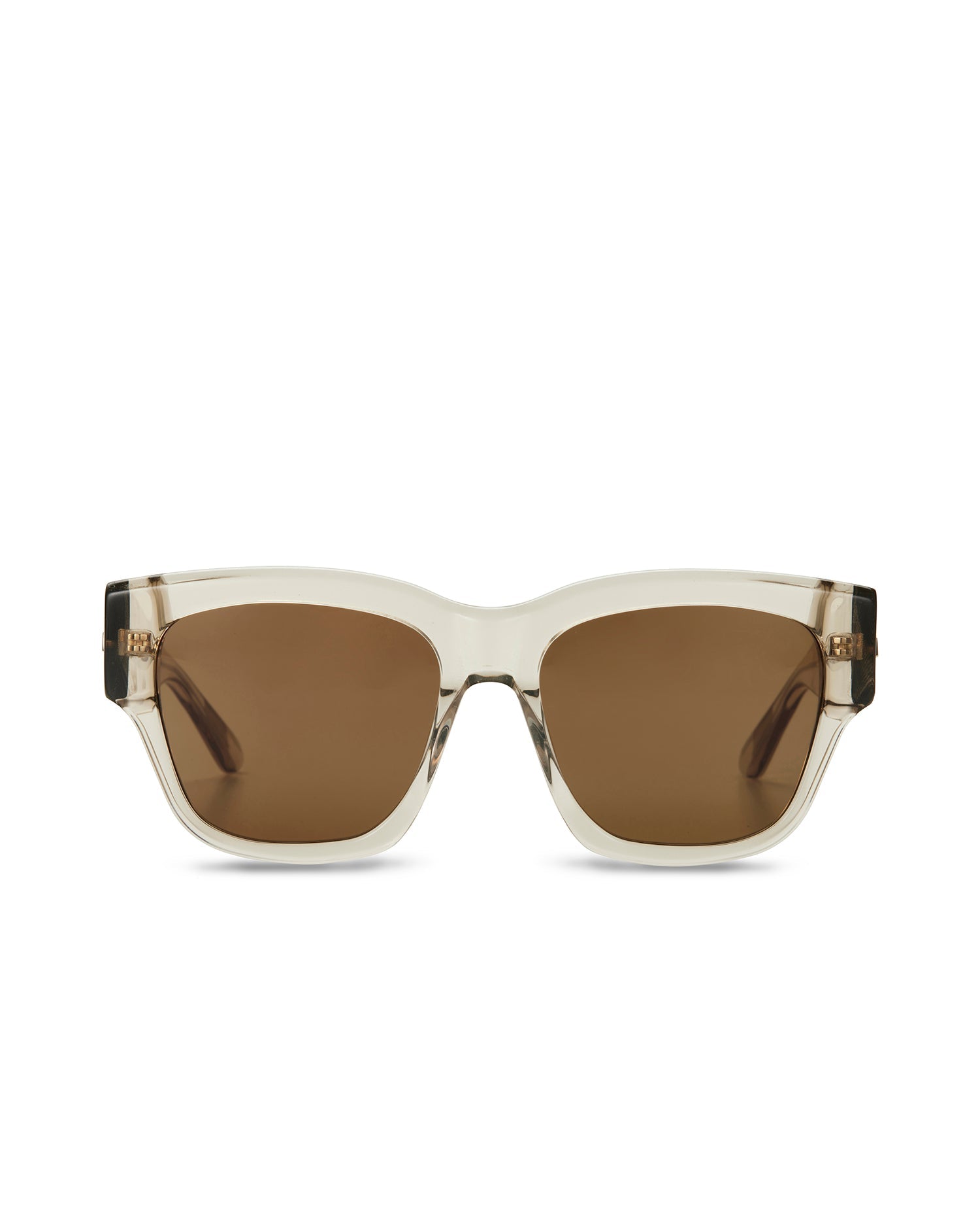 Pictured: Dahlia in Limestone Green plant-based acetate with Solid Brown Lens